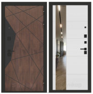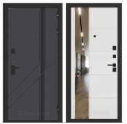 Дверь металлическая "Labirint" \ ISSIDA - 31 Белый софт, зеркальная вставка с тонировкой