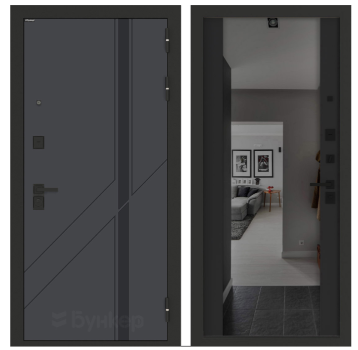 | Фурнитура | Металлическая черная: Броненакладкая, сувальдные накладки со шторкой, ручка FZ21-241 D BL, ночник, цилиндр ключ-вертушка, глазок сбоку или по центру |