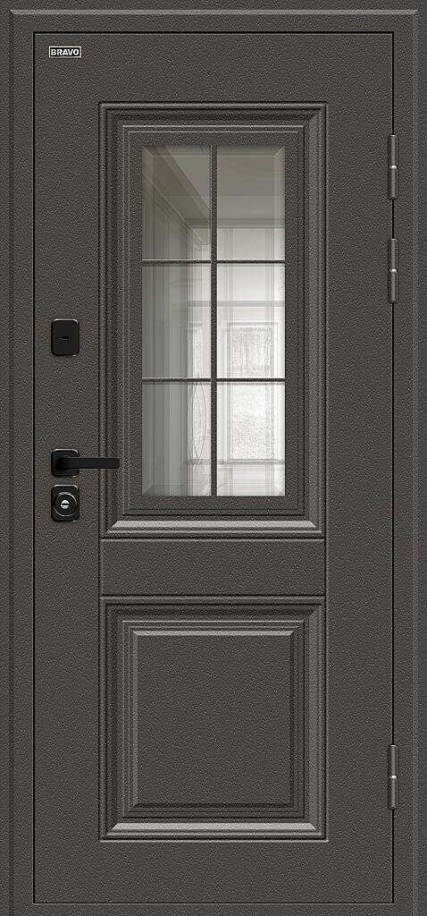 Стальной дверной блок энергосберегающей конструкции с двойным терморазрывом (термомостом) из натуральной пробки, четырехконтурным уплотнением и уникальным цилиндром с термоштоком. Поставляется с правым и левым открыванием наружу.