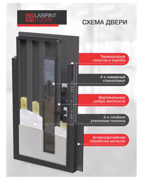 4-х камерный стеклопакет 81 мм, тонировка графит |